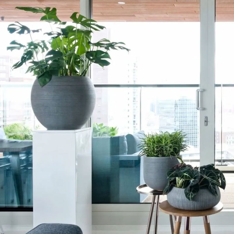 Bei Haas Innengrün finden Sie Pflanzgefäße, die nicht nur in Form und Material, sondern auch in Farbe vielfältige Gestaltungsmöglichkeiten bieten. Von dezenten Naturtönen bis hin zu kräftigen Farbakzenten – unsere Gefäße passen sich jedem Raumkonzept an und setzen Ihre Pflanzen perfekt in Szene. Ob schlichte Modelle oder exklusive Design-Gefäße, in kleinen Tischgrößen oder großen Formaten, wir bieten eine breite Palette an Größen, Materialien wie Keramik, Metall und recyceltem Kunststoff sowie Farbvarianten, die Ihre Innenbegrünung stilvoll und individuell ergänzen