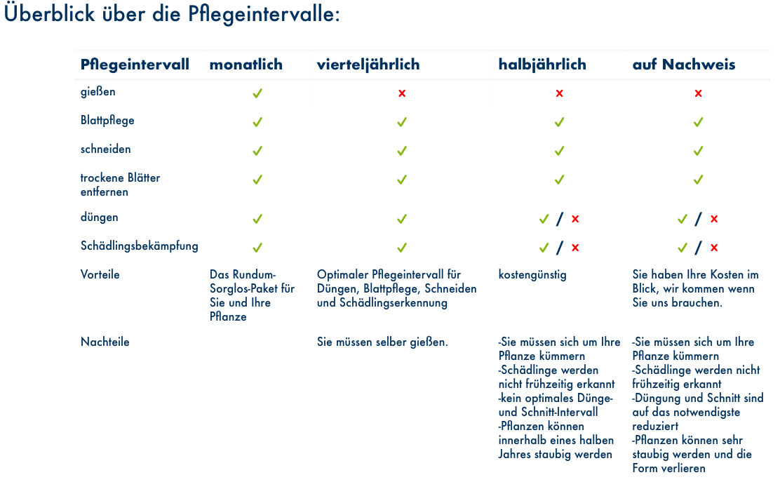 Regelmäßige Pflegeintervalle: Wenn gewünscht, vereinbaren wir mit Ihnen regelmäßige Pflegeintervalle. So stellen wir sicher, dass Ihre Pflanzen stets in bestmöglichem Zustand sind.